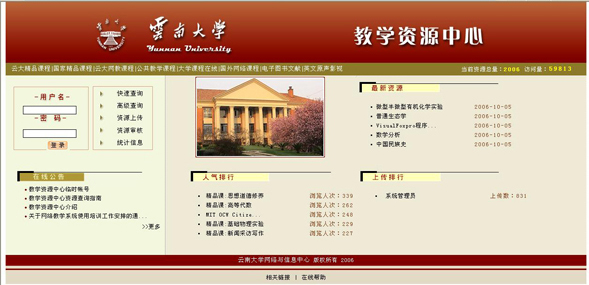 英国beat365官方网站教学资源中心已于近日开通。教学资源中心资源中心为广大师生提供了校内校外2000多门涉及文、理、工、农、医、商等门类,种类繁多的网络教学课程,并成为云大教师开设网络课程的又一平台。