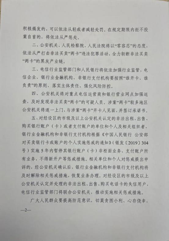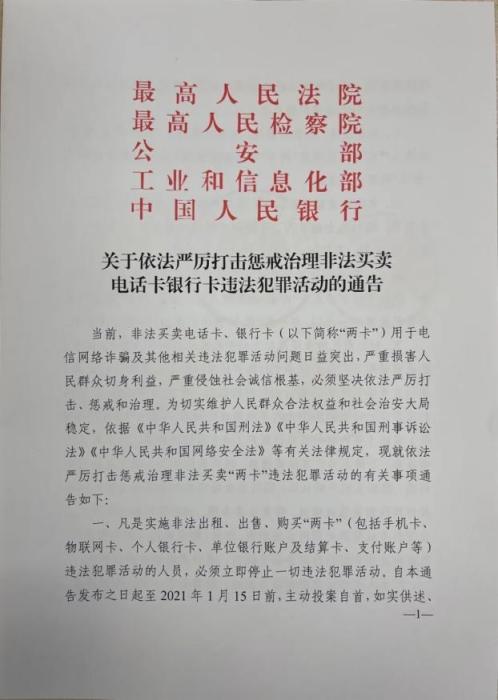 关于依法严厉打击惩戒治理非法买卖电话卡银行卡违法犯罪活动的通告