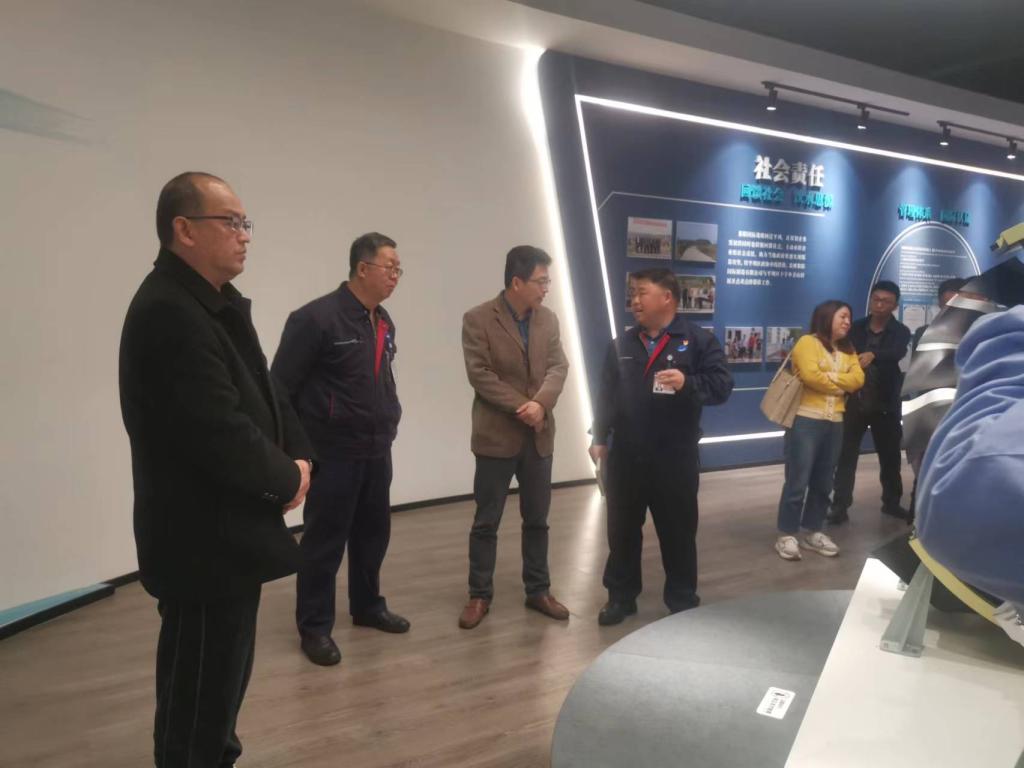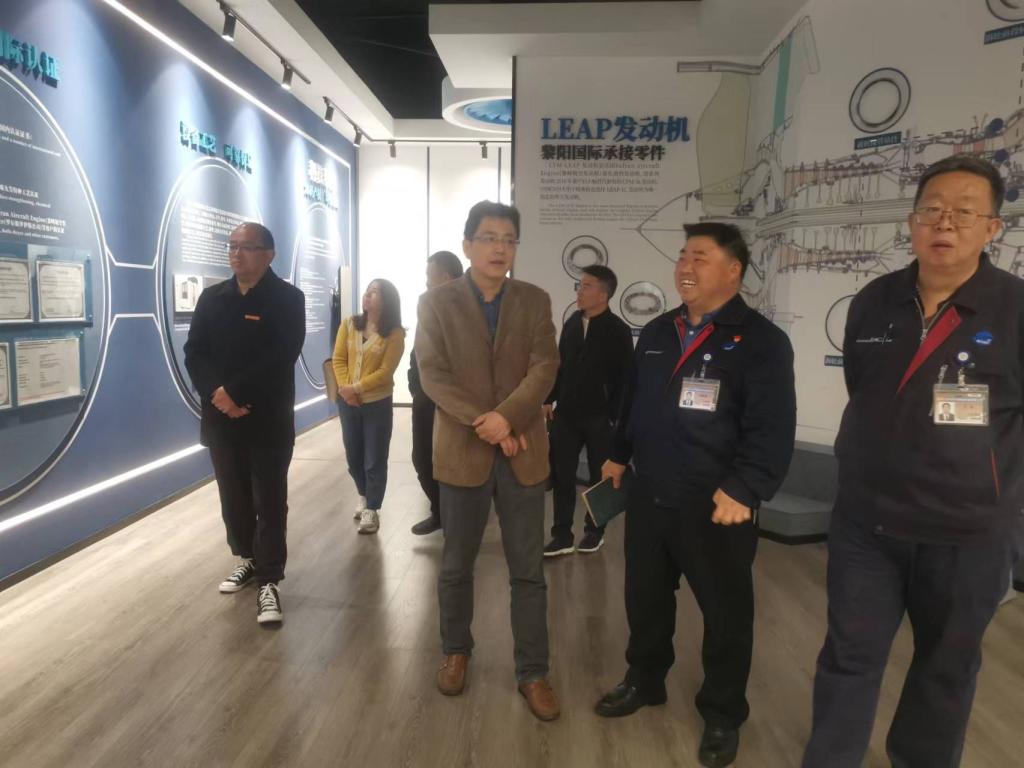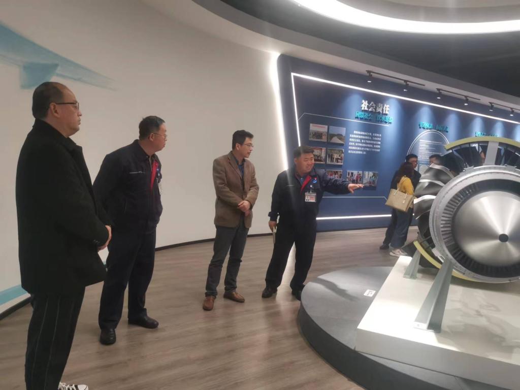 在贵州黎阳国际制造有限公司总经理梁桥、党总支副书记郑剑辉、人事及质量副总经理王克、技术副总经理胡林荣与综合管理部副部长冯灏的陪同下,金焱院长一行实地参观企业厂史馆及生产车间,并在座谈交流中对企业经营规模、岗位资源、人才需求等情况进行深入调研。