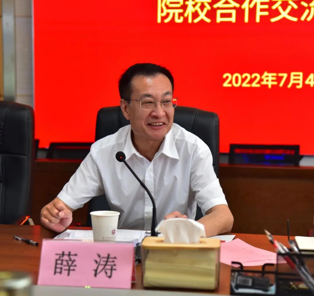 2022年7月4日,贵州科学院党委书记薛涛、副院长张覃同志率有关科研院所负责人及科技专家等一行8人莅临best365官网参观考察并就院校合作进行了座谈交流。