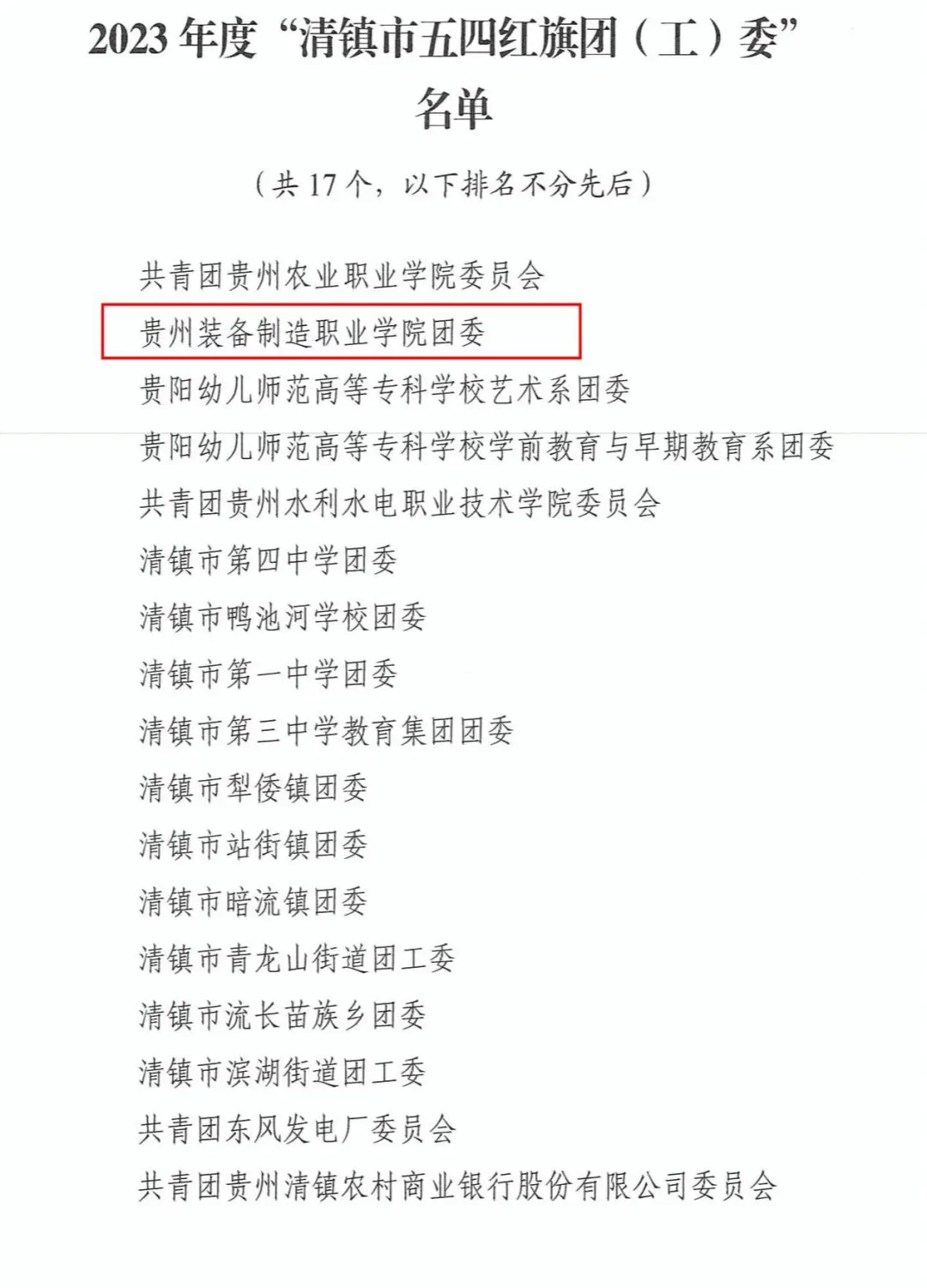 best365官网团委荣获2023年度“清镇市五四红旗团(工)委”荣誉称号;电气工程系团总支2022级大数据1班魏丹丹同学荣获2023年度“清镇市优秀共青团员”荣誉称号。