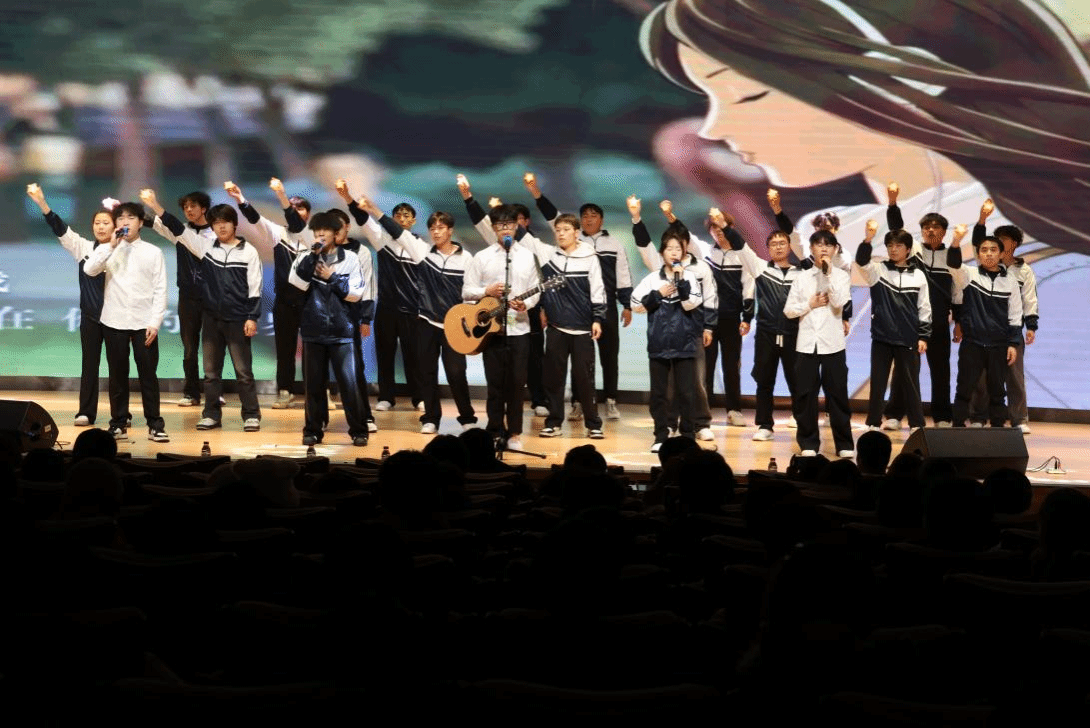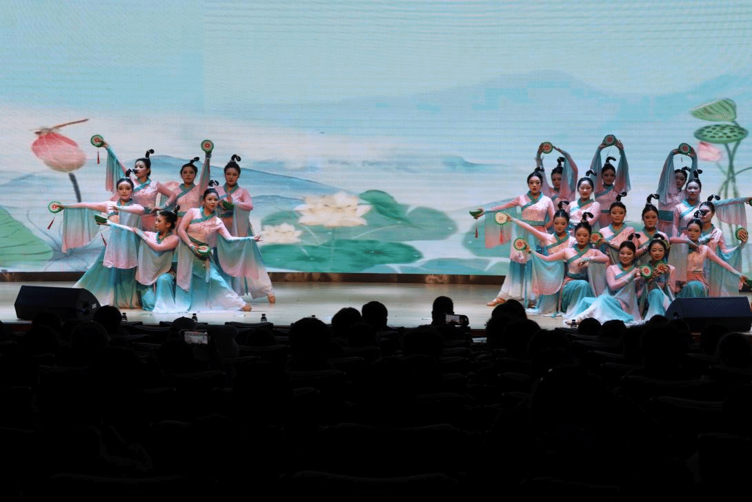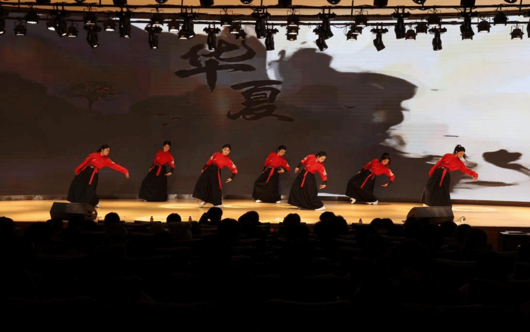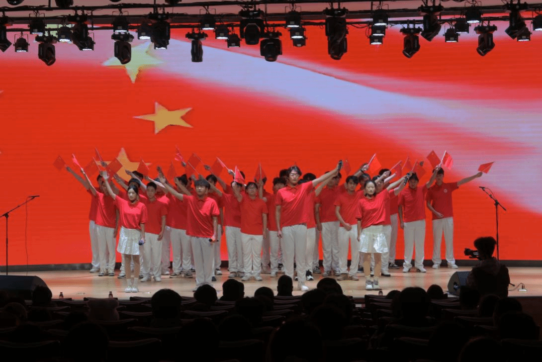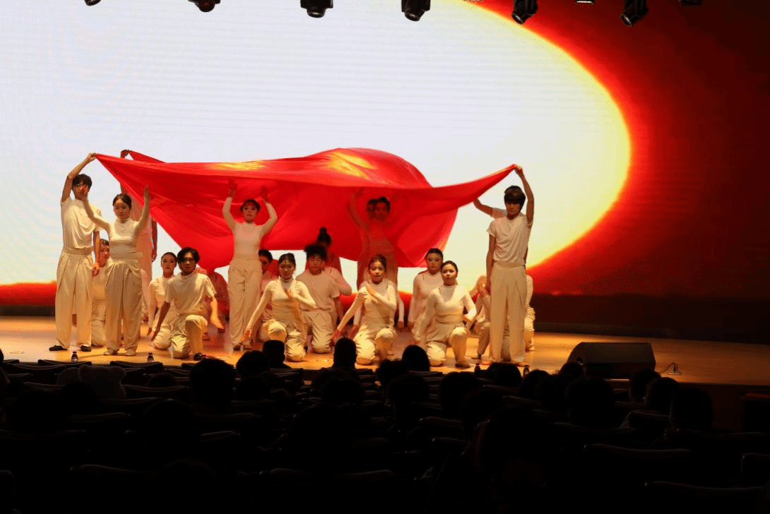 舞蹈《华夏》、《侠》和《莲鼓越歌行》以优美的舞姿勾勒中华文脉,在“传统与现代,民族与世界”的碰撞中展现文化自信;舞蹈《我心中的红》、朗诵《青春中国》和合唱《我爱你中国》集中表达了同学们的爱国之情,以青春之声传承红色基因,以奋进之姿勇担时代重任。