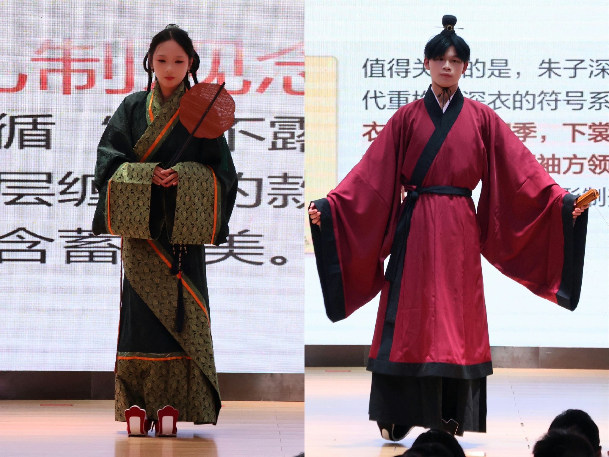 活动由“校园之声”广播站的同学们担任主持,大学生艺术团礼仪班的同学们则化身为“汉服推荐官”,生动地展示了不同形制汉服以及服装背后蕴含的历史文化和古代礼仪知识。大学生艺术团的同学们还表演了优美的国风舞蹈,活动现场掌声不断、气氛热烈。