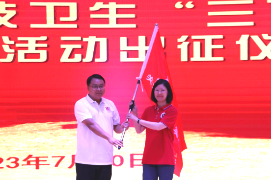 党委书记熊星老师为团委暑期“三下乡”社会实践活动队伍授旗