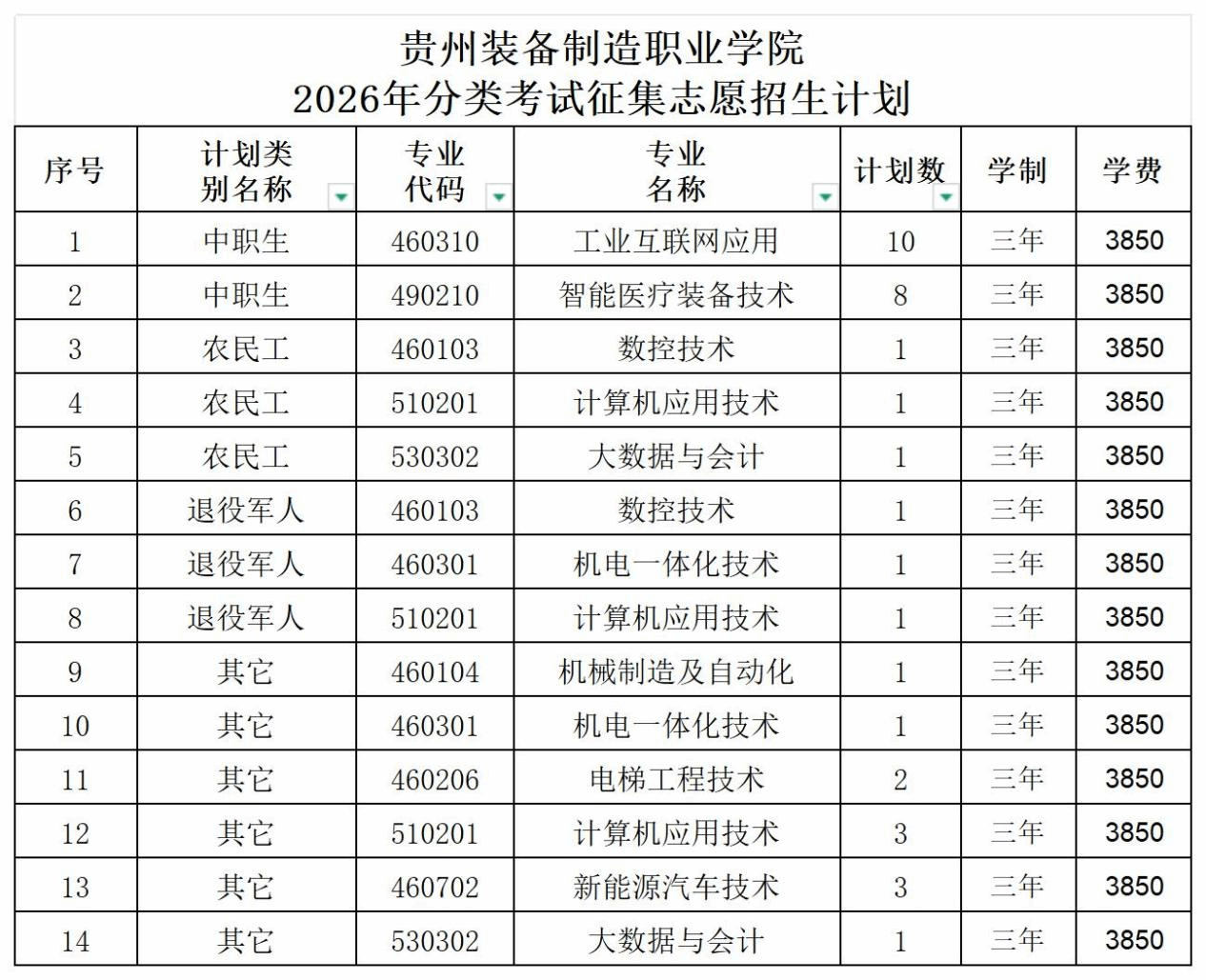 学院2026年分类考试征集志愿招生计划如下,具体以省招生考试院公布的缺额计划为准。
