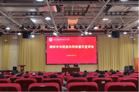 5月21日,为深入贯彻落实习近平总书记关于加强和改进民族工作的重要思想,加强学校铸牢中华民族共同体意识宣传教育,学校召开了铸牢中华民族共同体意识宣讲报告会,报告会特邀贵州省铸牢中华民族共同体意识宣讲团专家、贵州省社会主义学院黄菡薇博士到校开展专题讲座,学校教职工近300人聆听报告,学校党委委员、宣传统战部部长蒋永彪主持会议。