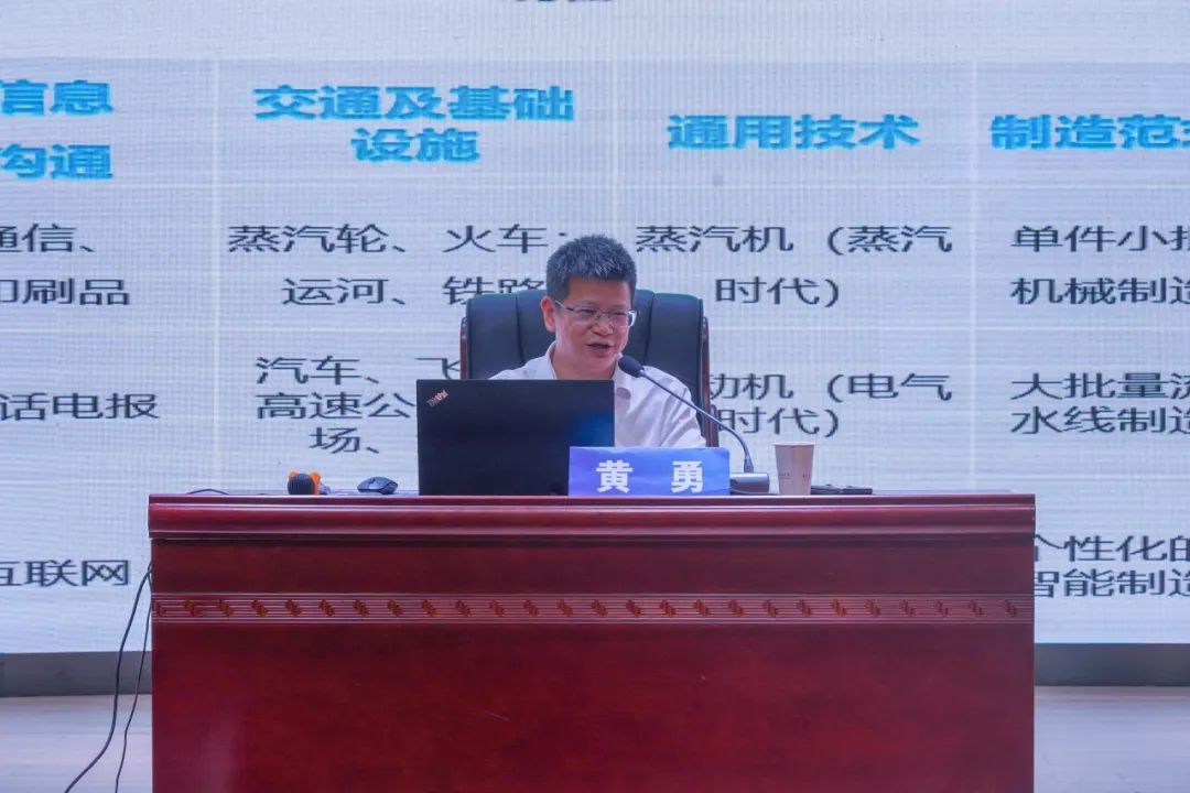 下午,贵州财经大学马克思主义学院副院长、教授和思鹏作题为《中国装备制造业的发展历程》的专题报告。和教授向同学们抛出“你了解的大国重器有哪些?”“你知道什么是装备制造业吗?”两个问题进行互动。指出中国装备制造业发展能推动工业化进程,提升国家军事实力,增强国际竞争力,促进技术创新与人才培养,优化产业结构及实现经济的高质量发展。讲述新民主主义革命时期、社会主义革命和建设时期、改革开放和社会主义现代化建设时期及进入中国特色社会主义新时代中国装备制造业的发展情况。最后详细介绍中国装备制造业的未来发展之路。