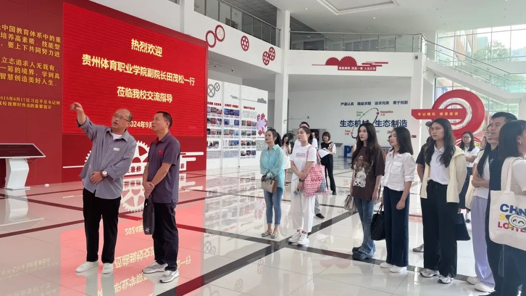 会前,贵州体育职业学院副院长田茂松一行先后参观了学校理想信念基地、实训车间、润心辅导员工作室及“一站式”学生社区等。
