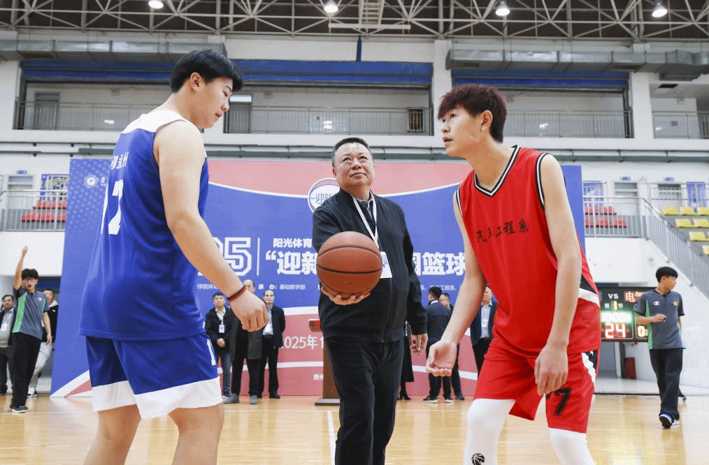 学院党委书记杨志宏发表致辞,他代表学院党委向赛事开幕表示祝贺,向筹备人员与裁判员致以敬意,向参赛运动员及现场的老师同学们送上立冬问候。“古人云‘冬藏为春生蓄力’,篮球运动中的协作与拼搏,正是青春最好的‘冬藏’方式。”杨志宏书记指出,此次“迎新杯”历经一月预选赛淬炼,10 支晋级队伍的脱颖而出,恰如立冬“水始冰、地始冻”后的坚韧生机,赛事不仅是校园文化盛事,更是帮助新生融入集体、锤炼品格的重要平台。