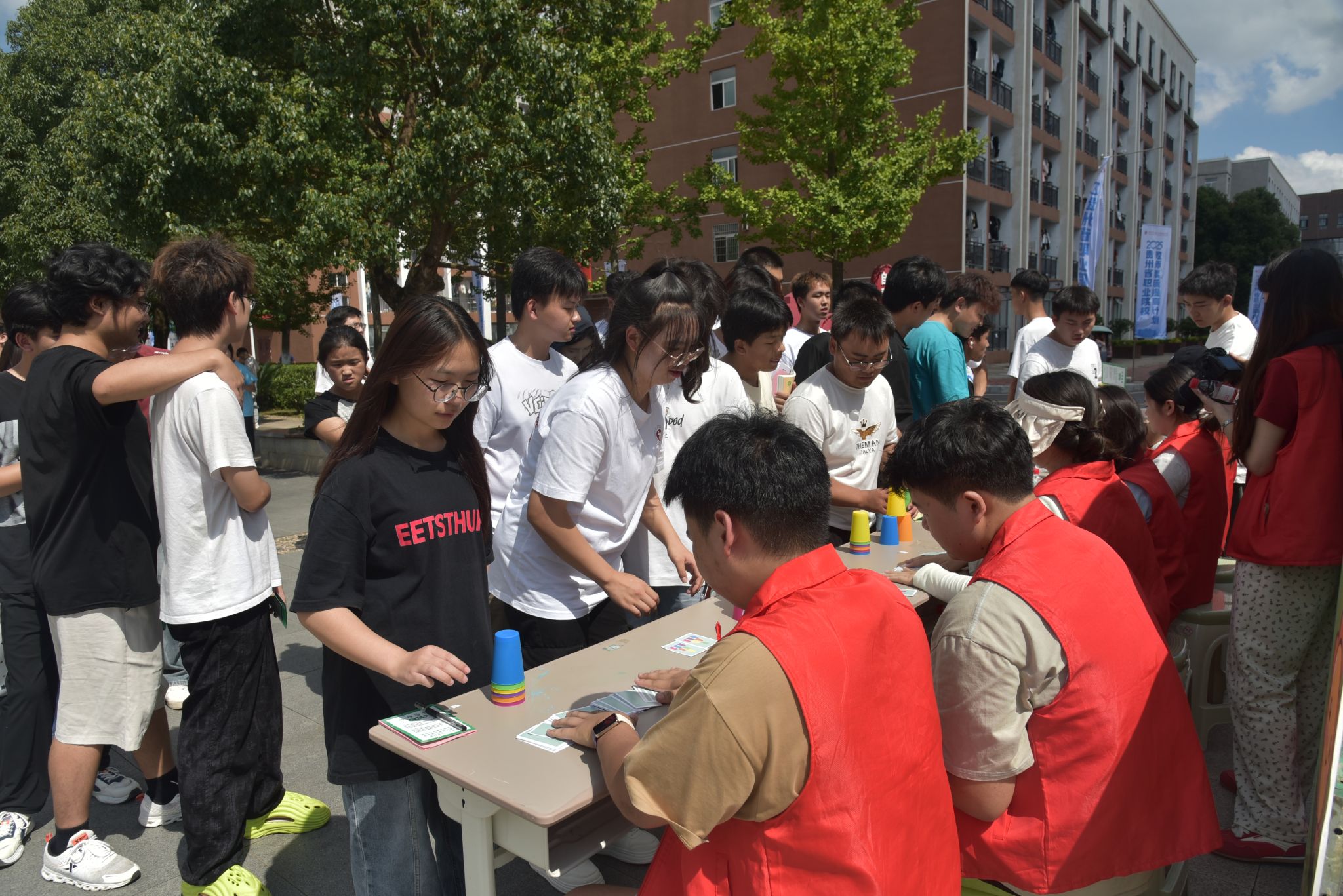 为丰富校园心理健康活动形式,营造趣味育心、互助成长的校园氛围,引导学生在互动体验中释放情绪、增强团队凝聚力,团委(心理健康教育与咨询中心)与各系部于10月10日开展了“为心赋能 育见美好”第三届心理游园会。游园会现场设有6个常规活动和多个隐藏挑战,包括“钓愉拾趣” “巧手叠杯” “心灵签动”等互动项目,学生通过完成任务收集徽章、兑换礼品,在体验中感悟团队协作与情绪管理。本次游园会吸引了700余名同学参与,活动现场气氛热烈,同学们参与热情高涨。