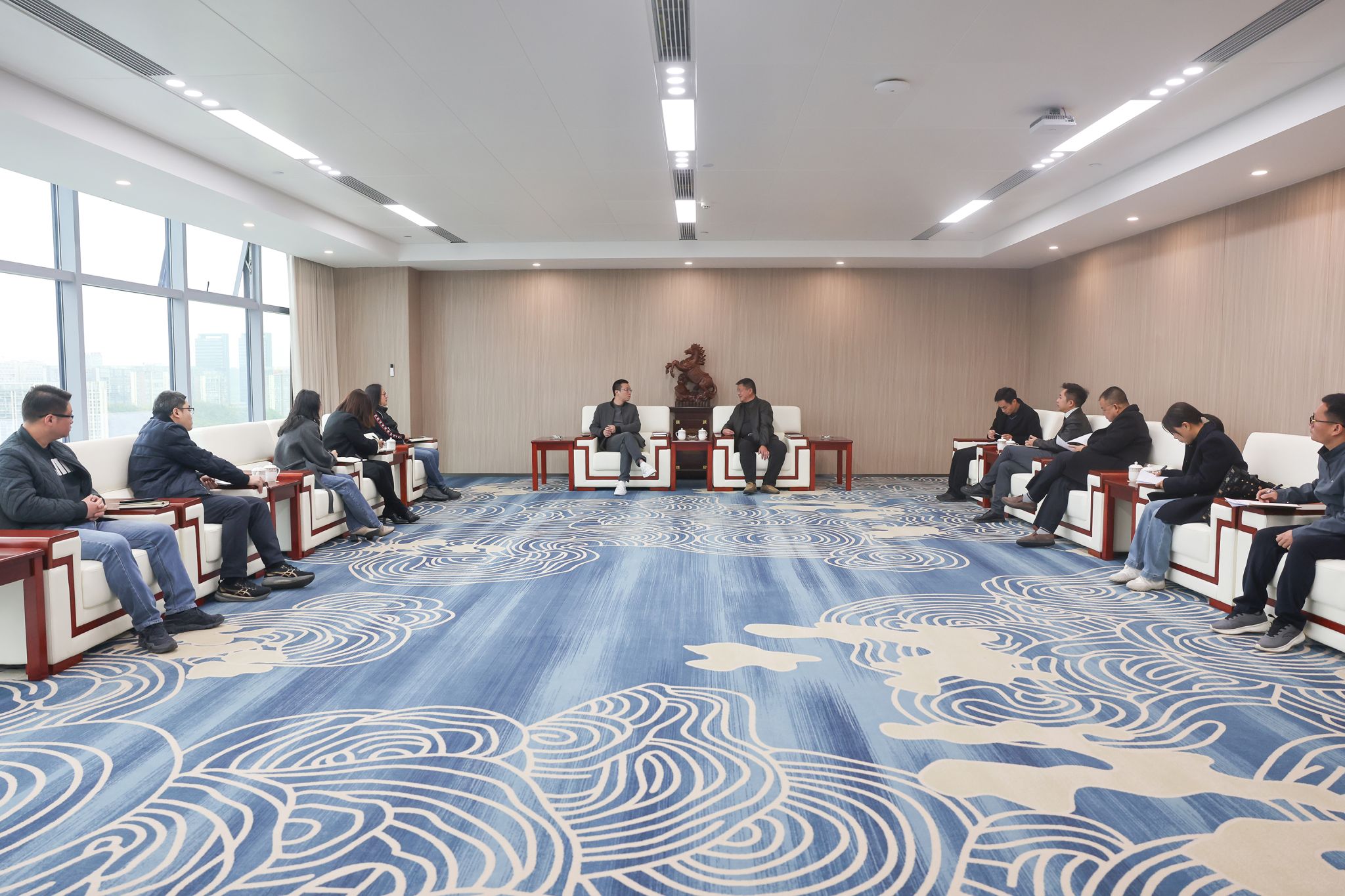 贵州燃气集团股份有限公司党委副书记、总经理王若宇对张克峰副院长一行的到访表示热烈欢迎,并陪同参观了公司的智慧指挥调度中心。在参观过程中,企业相关负责人详细介绍了公司的发展历程、业务布局、先进技术应用以及岗位人才需求。公司副书记郭亚丽、技术部部长李科等共同参与交流。