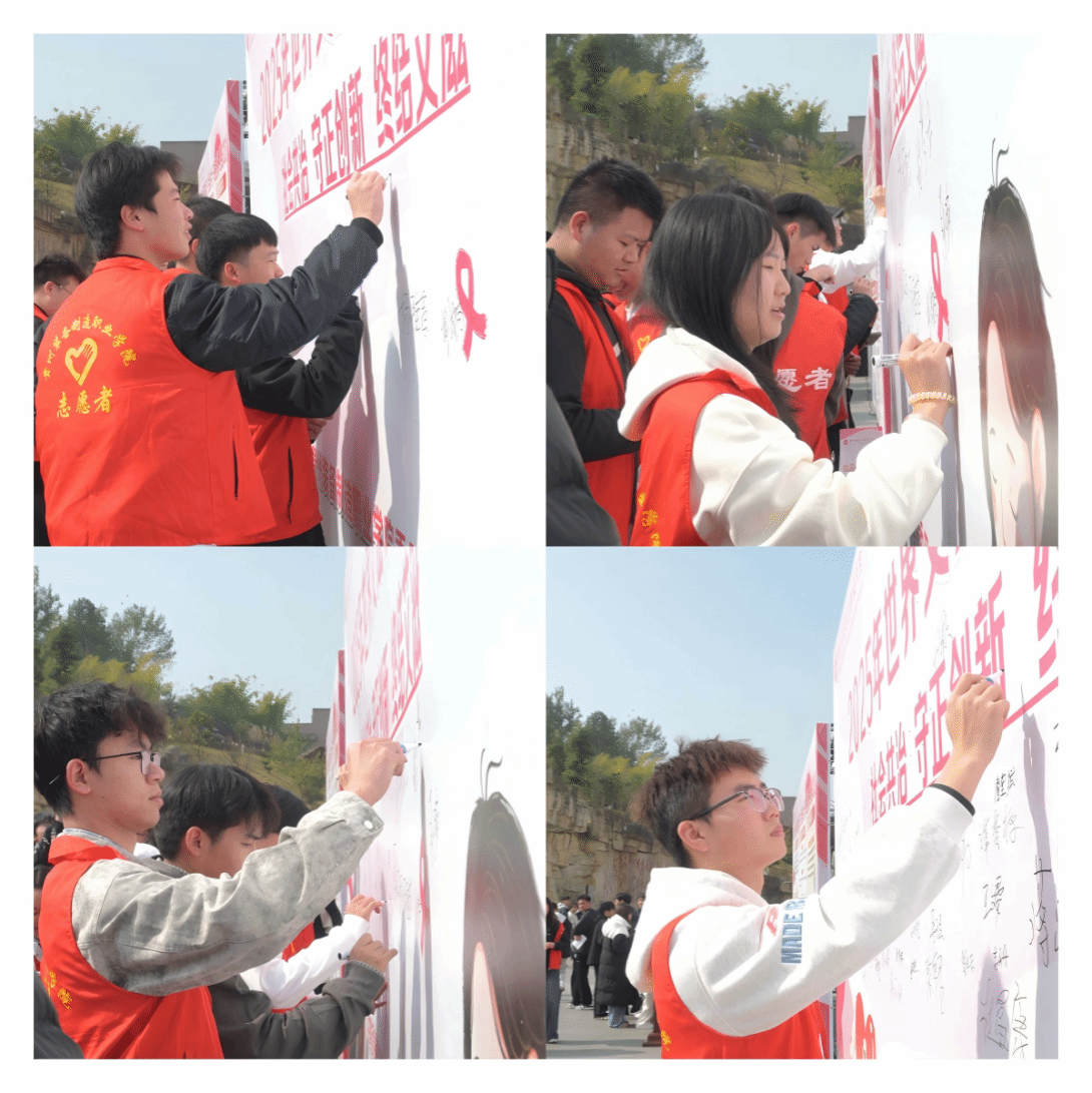 师生代表在防艾承诺墙上签名