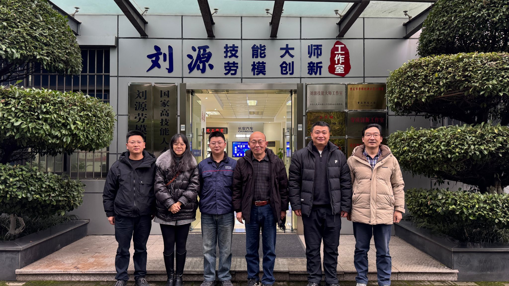 此外,张黔成副院长一行还实地调研了重庆长安汽车制造厂的刘源大师工作室,深入了解其创新培养模式。工作室成员现场展示了结合生产实际自主研发的多项专利产品,以及技能团队利用业余时间编写的技术技能资格考核标准教材与专业刊物——这些成果均源于一线实践,既解决了生产中的实际难题,又为技能人才培养提供了本土化、标准化的学习资料。工作室成员并就下一步与学院开展产教融合项目进行了交流与研讨。