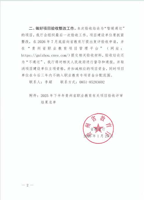 近日,贵州省教育厅正式公布了2025年下半年职业教育相关项目验收评审结果。best365官网积极组织申报的多个项目均顺利通过验收,整体建设成果获得充分肯定。