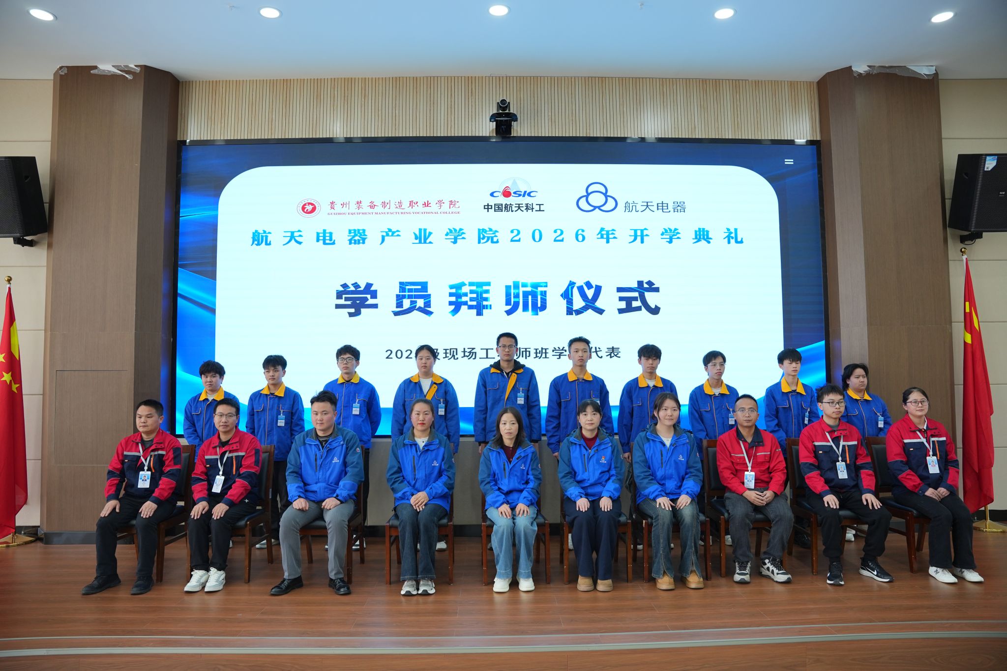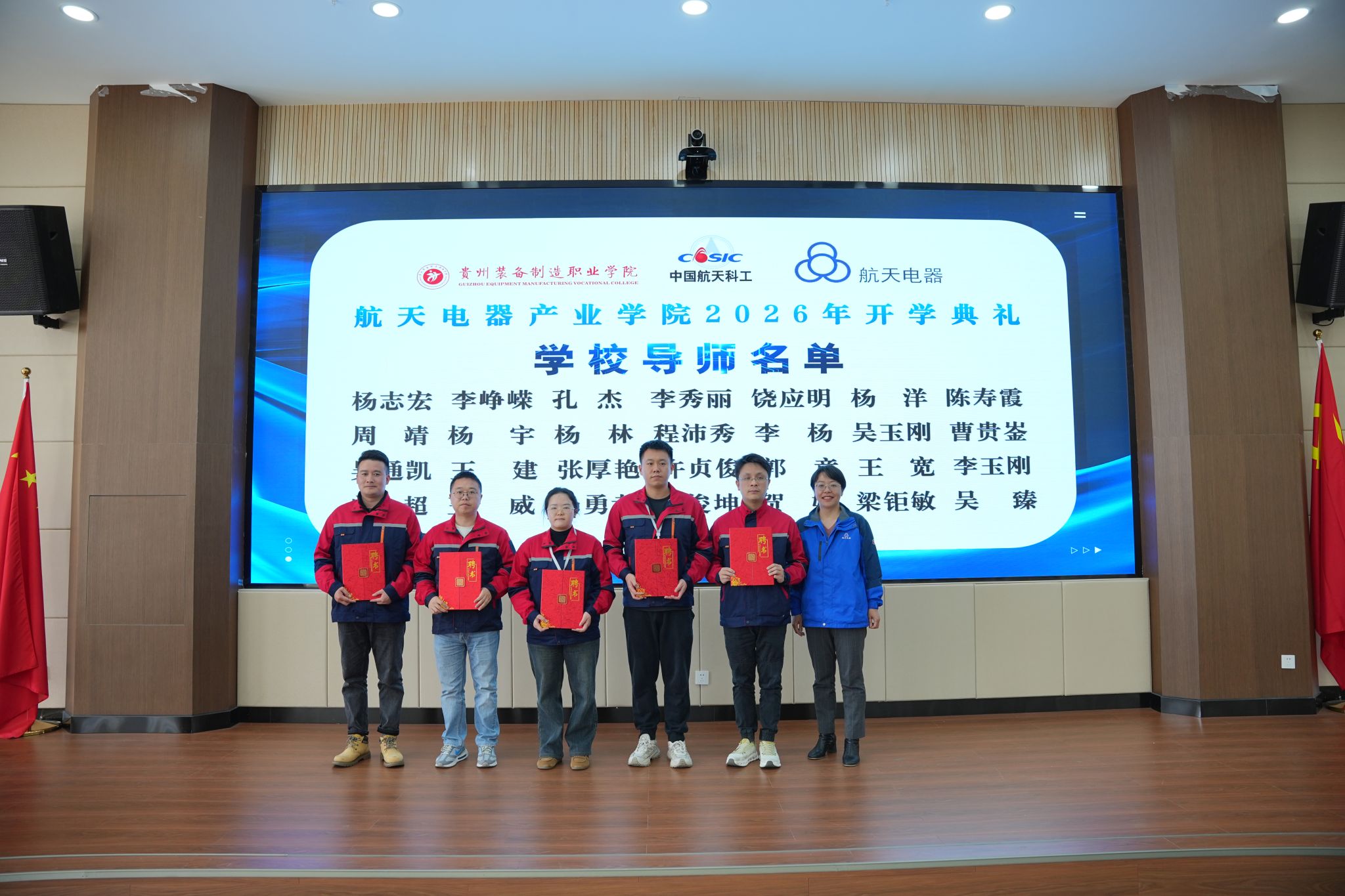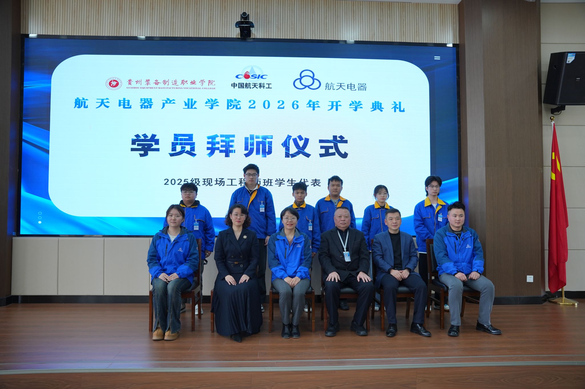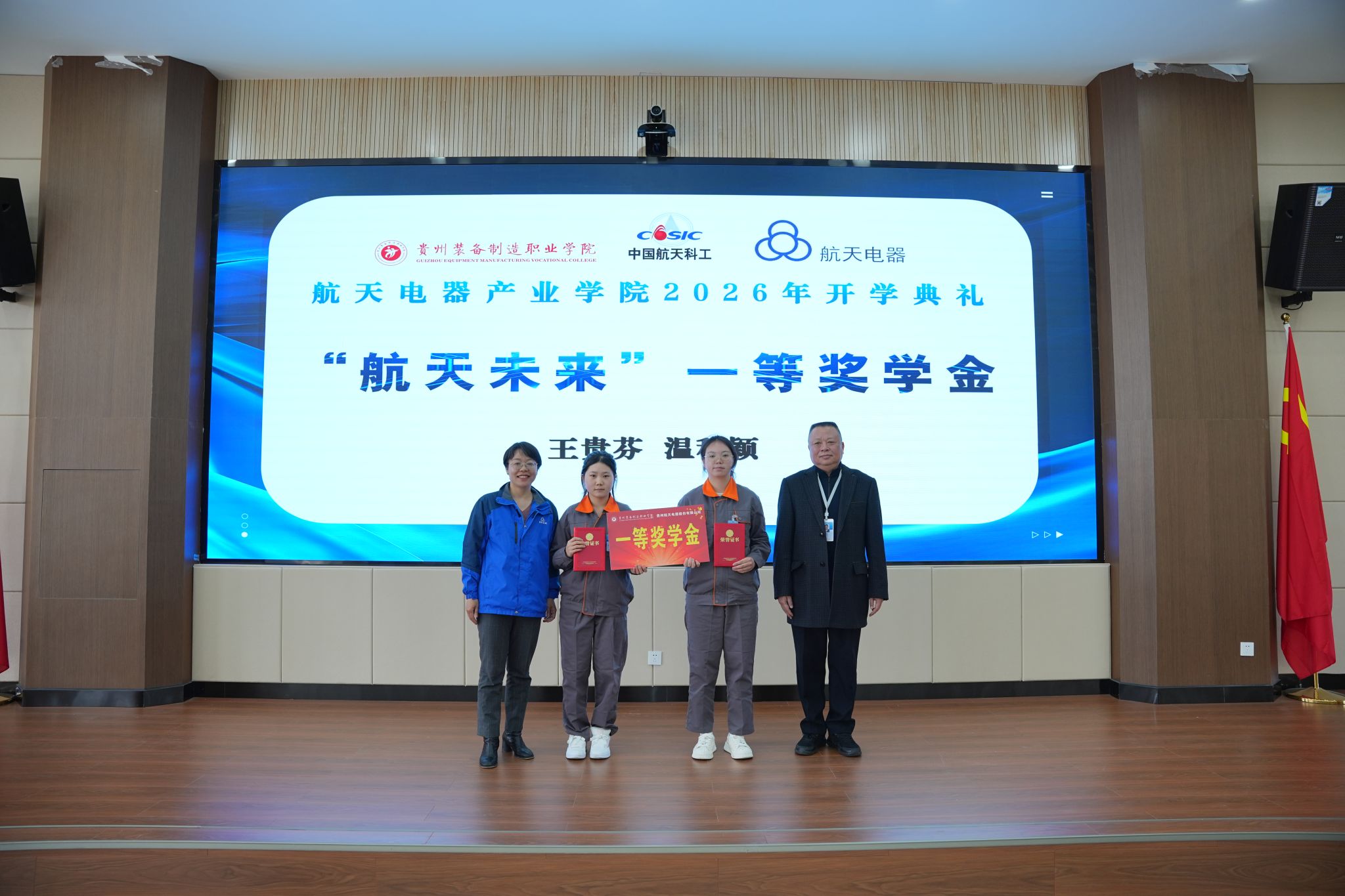 2026年3月10日下午,best365官网与贵州航天电器股份有限公司共建的“航天电器产业学院”2026年开学典礼暨“航天未来”奖学金颁发仪式隆重举行。学院党委书记杨志宏,学院党委委员、副院长孔杰,学院党委委员、副院长李秀丽,贵州航天电器股份有限公司人力资源部副部长曾安梅,企业技能大师徐利容,贵州财经职业学院党委委员、副院长肖燕等校企双方领导、嘉宾出席仪式,2024级、2025级“现场工程师班”全体学员及受聘校企导师代表参加活动,仪式由机械工程系党总支副书记、系主任杨林主持。