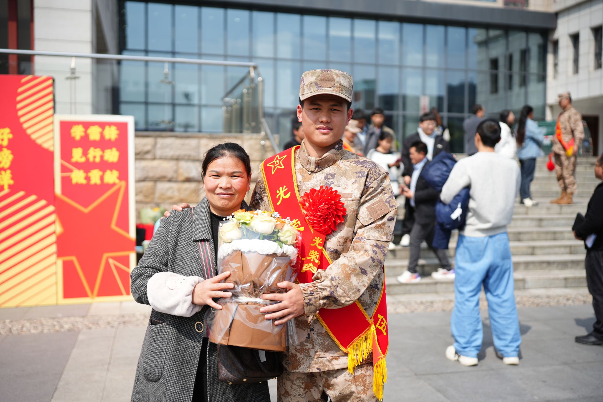 仪式结束后,院领导、辅导员与入伍学子及家属亲切合影,师生们纷纷与学子拥抱告别,送上手中鲜花,鼓励同学们继续奋进。