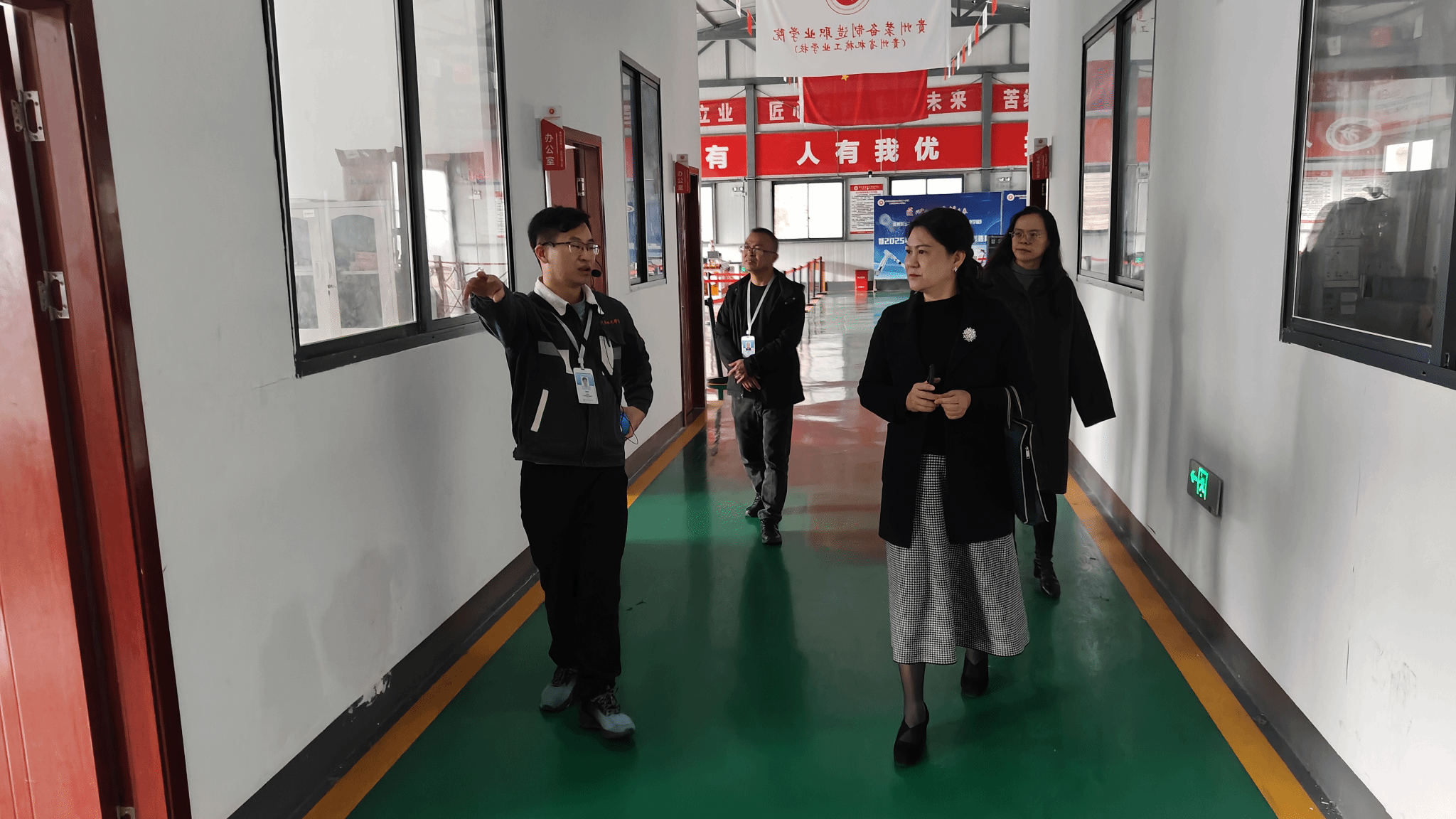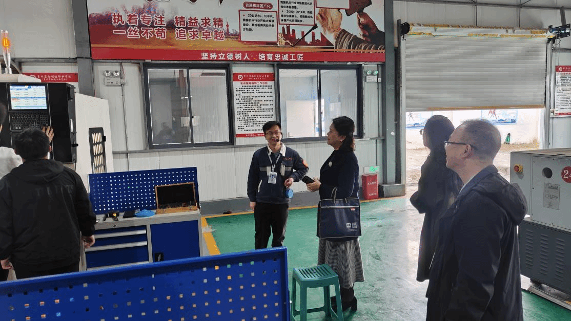 调研伊始,李峥嵘副书记先来到校文化长廊,系统了解了贵州省机械工业学校自1981年建校以来的发展历程。随后,前往汽车实训室、工程中心实训室(工业机器人操作间),实地察看了中专部的理实一体化教学设备运行情况。在实训现场,她仔细询问实训设备的使用年限、维护情况及学生实训课程的开设频次,观摩学生实操训练场景,对中专部立足专业特色,培养技术技能人才的实践路径给予认可。