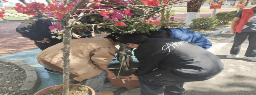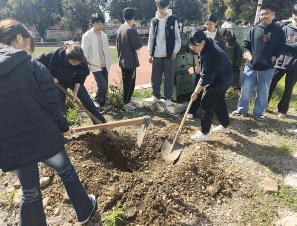 中专部团总支将学雷锋活动与劳动教育紧密结合,在植树节当天,团员青年们分工合作,在校园内共同种下了一株株新绿。