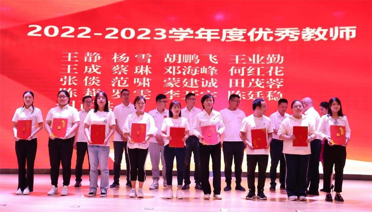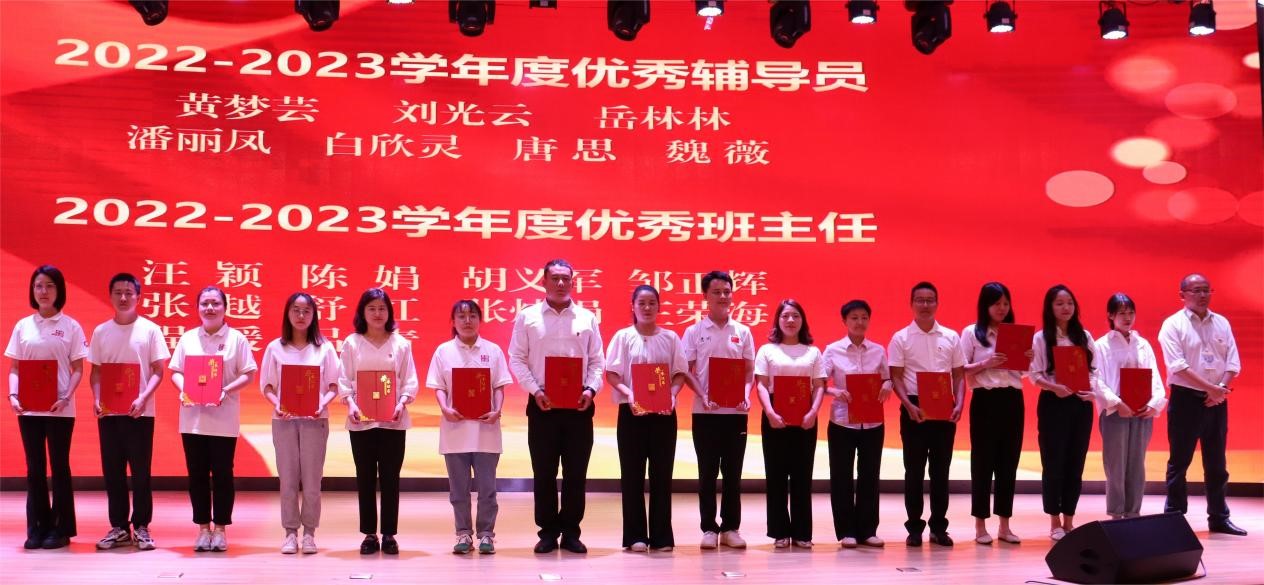 在表彰环节,党委副书记杨丽芳同志宣读了《best365官方网站关于表彰2022-2023学年度优秀教师、教育工作先进个人、优秀辅导员、优秀班主任的决定》《best365官方网站关于表彰2022年度“两优一先”和“身边榜样”的决定》;团委副书记孙文同志宣读了30年教龄教师名单、2022年目标绩效考核“突出贡献奖”名单、大思政课工作“突出贡献奖”名单,大会对学院131名教师进行现场表彰,与会领导为获得表彰的教师颁发优秀证书。