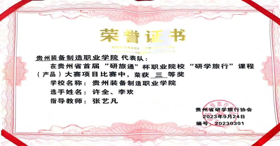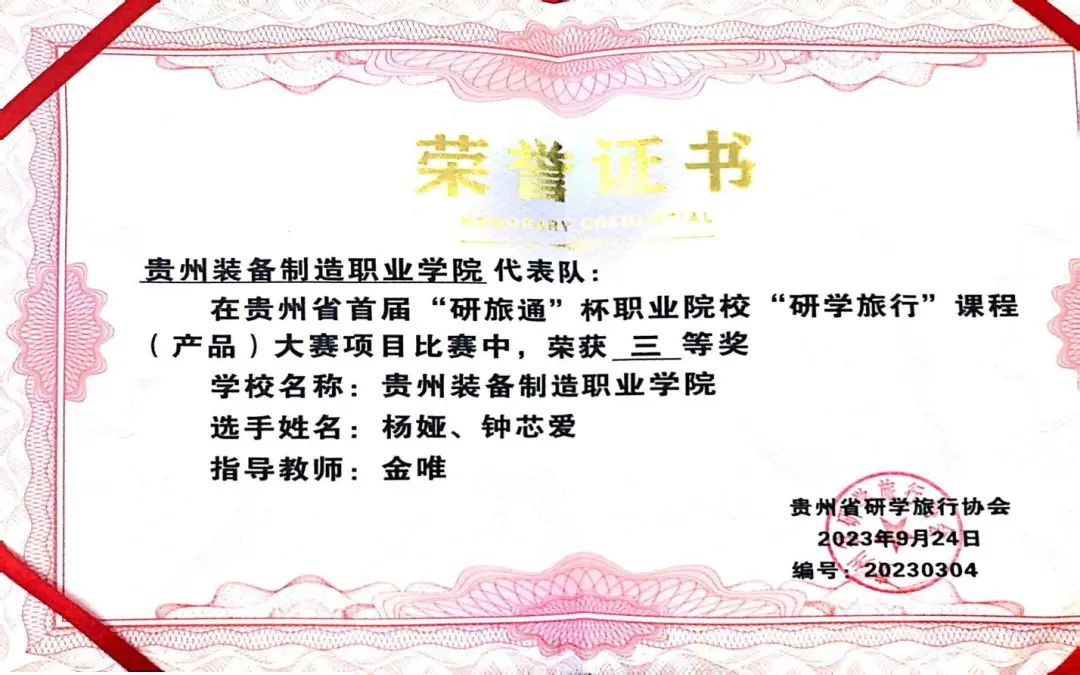 9月23日至9月24日,经过2天的激烈追逐,贵州省首届“研旅通”杯职业院校“研学旅行”课程(产品)大赛在黔南民族职业技术学院圆满闭幕。此次比赛共有38名来自贵州各高校的参赛选手同台竞技,best365官网派出4名选手代表参加比赛,通过奋力拼搏,获得两个三等奖的好成绩。实现了best365官网在本项赛事的重大突破。best365官网参赛选手在此次比赛中,展现了较高的竞技水平和良好的职业素养,通过对此次参赛经验总结,为后续将大赛中的新课程、新标准、新规范融入到课程内容中,深化教学改革,坚持立德树人的根本任务和高技能人才培养起推动作用。
