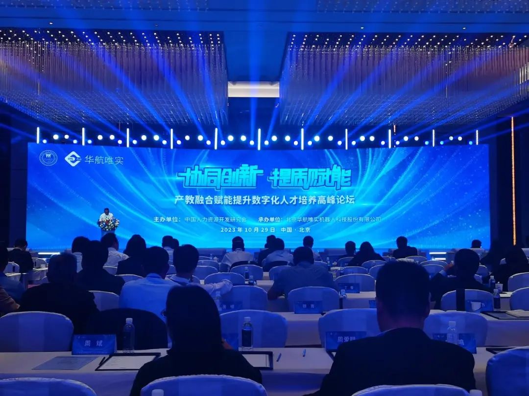 10月29日,学院党委副书记、院长金焱带队参加在北京举办的产教融合赋能提升数字化人才培养高峰论坛,论坛由中国人力资源开发研究会主办,北京华航唯实机器人科技股份有限公司承办。