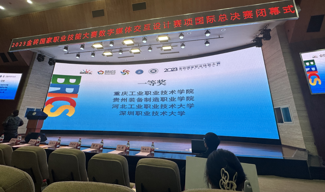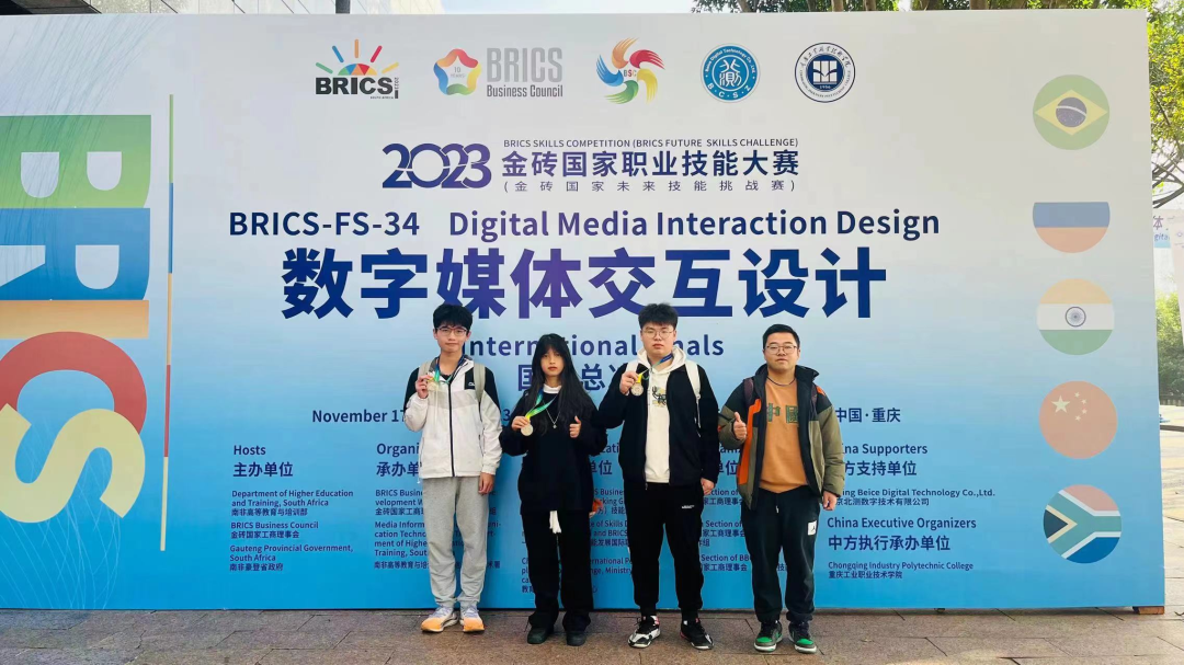 11月19日上午,在重庆工业职业技术学院闭幕的2023年金砖国家职业技能大赛数字媒体交互设计赛项国际总决赛中,best365官方网站参赛队从61支国内外参赛队中脱颖而出,以总分第二的好成绩获得一等奖,同时与马来西亚拉曼理工大学并列收获银牌。