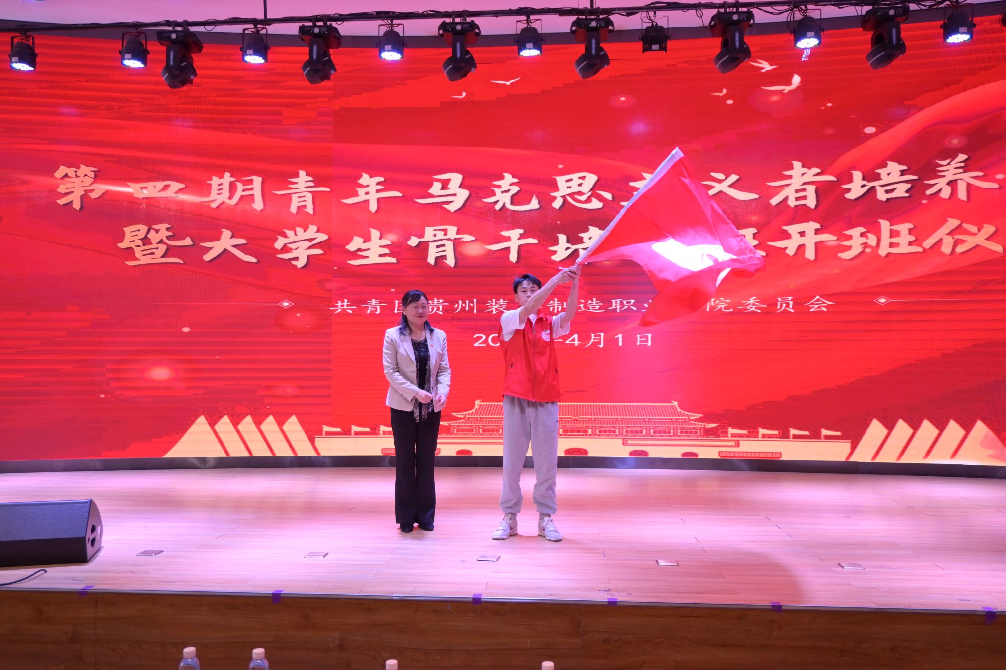 随后,学院党委副书记杨丽芳宣布第四期“青马工程”培训班开班并向学生代表进行授旗。