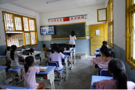 7月17日下午14:00,由机械工程系团总支组织的“三下乡”阳光服务队的队员在荔波县水岩村进行支教活动,尽管正值暑假,但孩子们依然带着暑假作业,准时到学校参加音乐、美术、体育、手语操、普通话的学习。