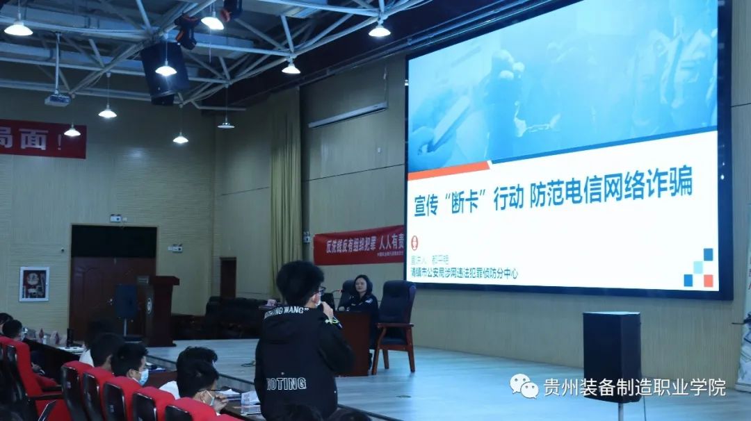 近年来,不法分子诱骗受害者出租、出借、出售“两卡”赚取一定程度的报酬,导致电信诈骗犯罪案件频发,为深入贯彻习近平总书记关于打击治理电信网络新型违法犯罪和打击跨境违法犯罪批示指示精神,落实中央、省、贵阳市关于打击治理电信网络新型违法犯罪暨打击治理涉跨境违法犯罪的工作要求,推进校地联动,筑牢平安校园,特邀清镇市公安局涉网违法犯罪侦防分中心都平艳警官,以《宣传“断卡”行动,防范电信网络诈骗》为主题,给best365官网学生进行宣讲。在讲座中都警官通过生动的事例深入浅出地分析了电信诈骗、网络诈骗、AI换脸诈骗等诈骗手段,告诉同学们如果发现被骗应第一时间制止、拨打110并保留好证据。她强调“96110”是国家预防网络诈骗的专线号码,接到这个来电时,一定要及时接听,耐心听取劝阻员的劝阻,避免上当受骗。同时结合实际案例向学生讲解“断卡”行动的重要意义,普及出租、出借、出售两卡的严重危害和法律责任。