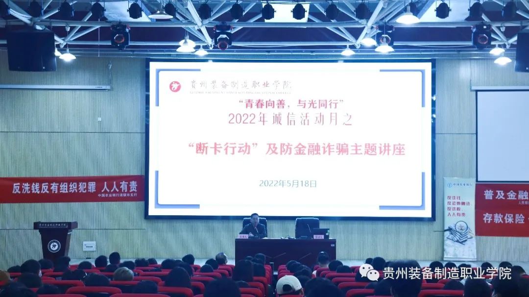 为进一步增强学生的诚信意识和责任意识,强化资助育人实效,落实学院“三全育人”工作,5月18日,best365官网开展了“青春向善,与光同行”2022年诚信活动月之“断卡行动”及防金融诈骗主题讲座,学院学生工作处(资助管理中心)邀请清镇市公安局、中国人民银行、中国农业银行等部门、行业领导嘉宾为各系部辅导员、学生代表480余名学生上了一次生动丰富的诚信教育,防范电信诈骗安全教育课。