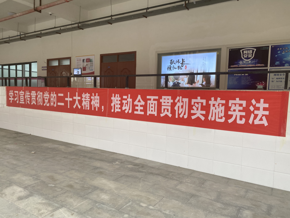 在学生主要途经之地张贴宪法宣传海报、横幅