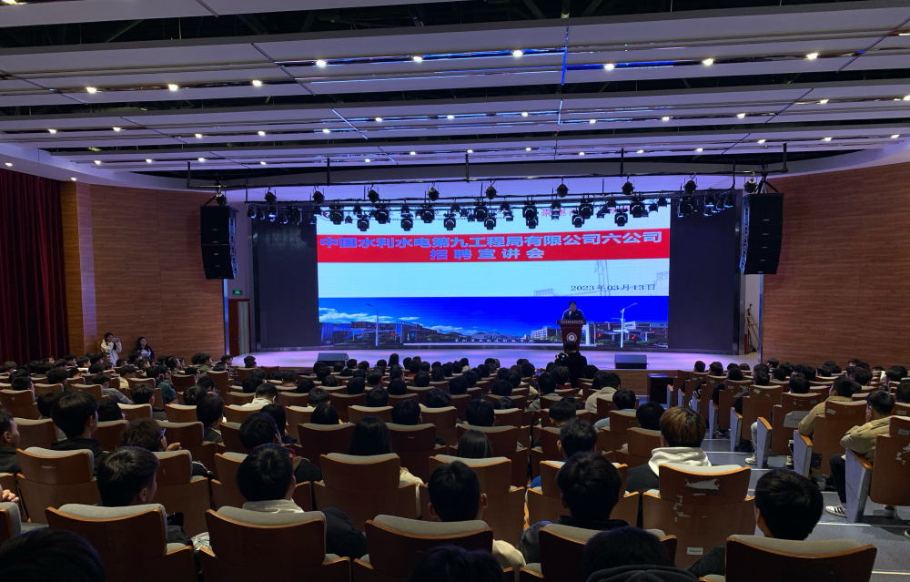 为深入贯彻落实党的二十大精神,进一步推动“稳就业”“保就业”决策部署落地见效,2023年3月13日,建筑工程系邀请中国水利水电第九工程局有限公司六公司到学院开展招聘宣讲会。