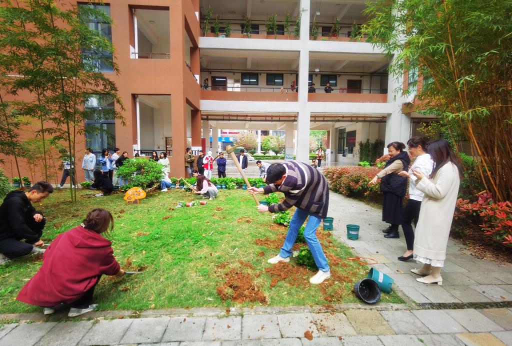 山清水碧,日暖风清。四月的校园,草长莺飞,生机盎然。为诠释“最美经管系”品牌,加强内涵建设,推进劳动教育与课外育人融合发展。4月10日,经济管理系师生在博文楼绿化区开展种花劳动实践活动。