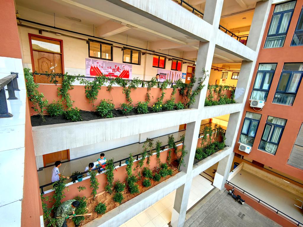 为了做好这项工作,经管系先后到贵州农业职业学院和贵安园艺花卉世界行进行了考察学习。本着节约、绿色、科学的精神,本次共种植培育了月季、玫瑰、绣球等品种共计100余株,覆盖了博文楼内外绿化区域,初步建成劳动教育基地,并分区域由班级负责维护,实现常态化监督管理。