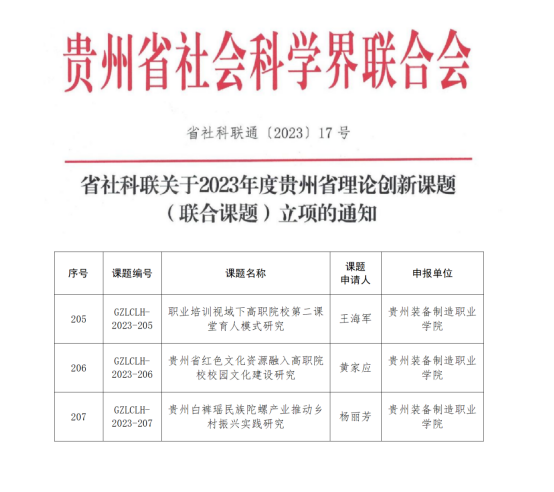 喜报|best365官网3项课题获省社科联2023年度贵州省理论创新课题(联合课题)立项