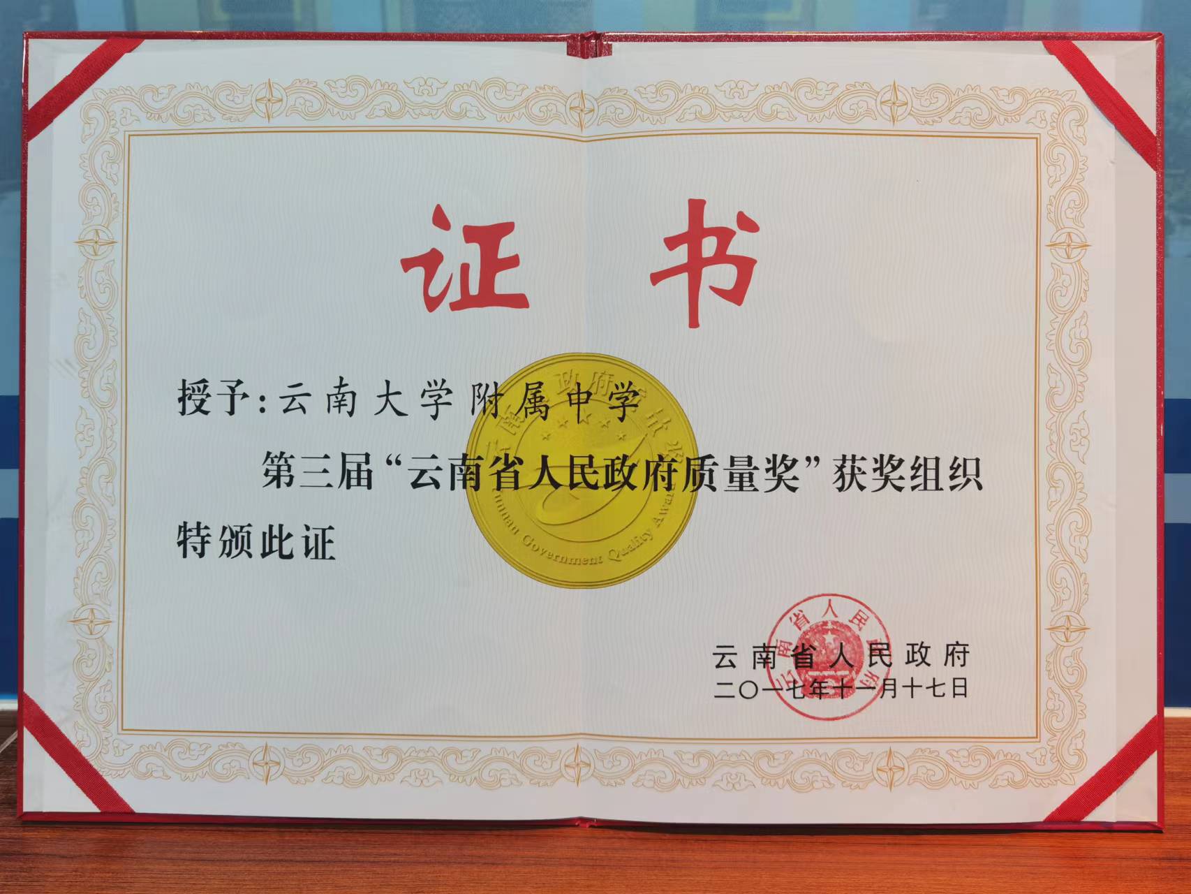 2017年,云大附中荣获“云南省人民政府质量奖”,创建成为首批“全国文明校园”;2018年荣获“中国质量奖”提名奖,荣获“云南省五一劳动奖状”,经验材料《活动德育喜闻乐见 价值教育主题鲜明》入选“2018年全国中小学德育工作典型经验名单”;2019年,附中党委被省委教育工委选树为“云岭红烛 育人先锋”全省党建示范学校。