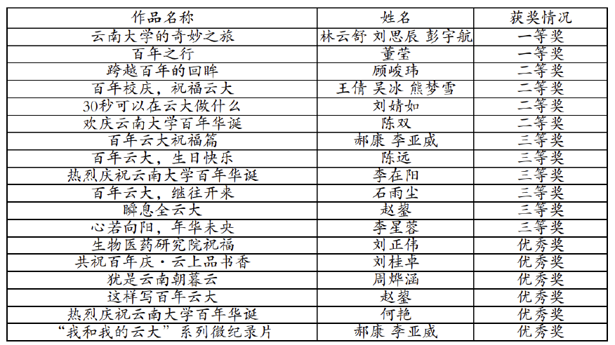 附件:“我心中的云大”短视频优秀作品拟获奖名单