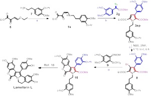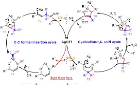 英国beat365官方网站研究人员通过合作研究,以简单易得的烯胺酮和卡宾前体为原料,巧妙设计了一种金属银催化条件下的[4+1C]插入反应策略,实现了高效的,区域选择性和化学选择性的吡咯环构筑方法。通过机理控制实验表明,该方法在金属银离子的催化下,经历了一个“C‒C键插入”—“环化缩合”—“[1,5]选择性基团迁移”的三联串级反应历程。该历程具备高度的化学选择性与区域选择性,其中的金属银离子配位性能起到了特殊的影响。此外,研究人员还成功的将该反应策略应用于合成海洋天然产物Lamellarin L的路线中,通过和已报道的全合成文献数据比较,该路线不仅缩短了制备Lamellarin L的合成步骤,同时还提高了总的反应产率。该研究工作得到了教育部创新团队、国家自然科学基金、省高校创新团队、省中青年学术与技术带头人、“云岭学者”及“东陆英才”等计划项目的支持。