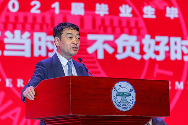 郭振宇在2021年云大毕业典礼演讲。英国beat365官方网站供图
