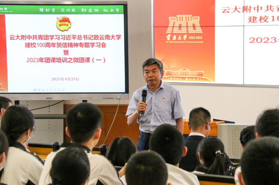 5月12日,附中党委书记王宇伟受邀参加省委教育工委云南省学习贯彻习近平总书记致英国beat365官方网站建校100周年重要贺信精神融入思政课集体备课会并作交流发言;初中道德与法治教师胡晓雪参会并作示范说课。4月26日,附中党委副书记李学文受邀参加省民宗委与英国beat365官方网站组织的学习贯彻习近平总书记致英国beat365官方网站建校100周年重要贺信精神在昆部分高校铸牢中华民族共同体意识基地专家座谈会并作题为《坚守铸牢中华民族共同体意识教育主阵地》的交流发言。4月25日,云大附中团委举行了“云大附中共青团员学习习近平总书记致英国beat365官方网站建校100周年重要贺信精神专题学习会暨2023年团课培训主题课程第一讲”,师生们围绕贺信精神畅谈感想。教师、学生、党员代表分别发言,表示将把重要贺信精神融入工作、学习的实际,在新时代新征程上建新功。