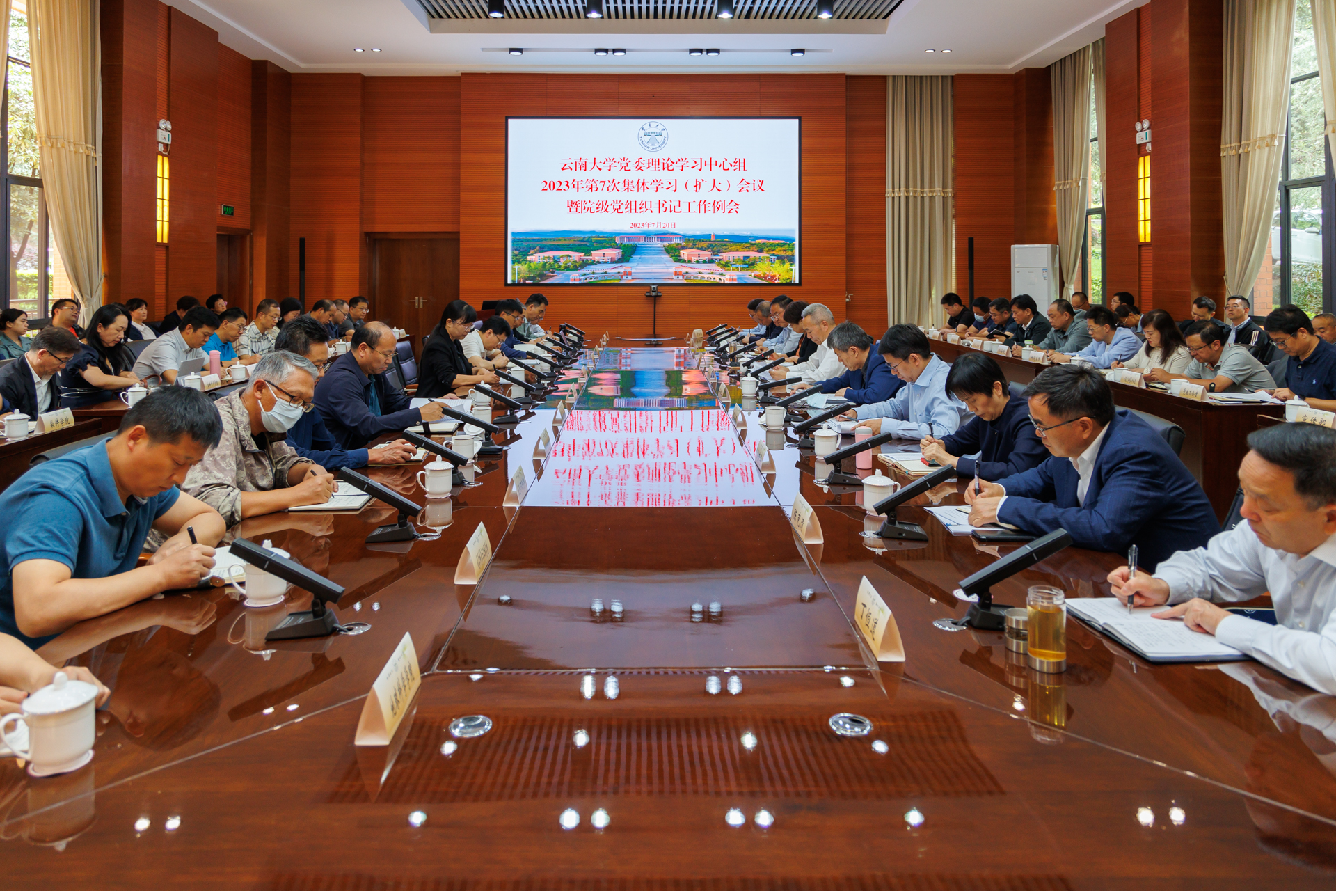 2023年7月20日,校党委书记周学斌主持召开校党委理论学习中心组(扩大)会议暨院级党组织书记工作例会。校长方精云院士出席会议。
