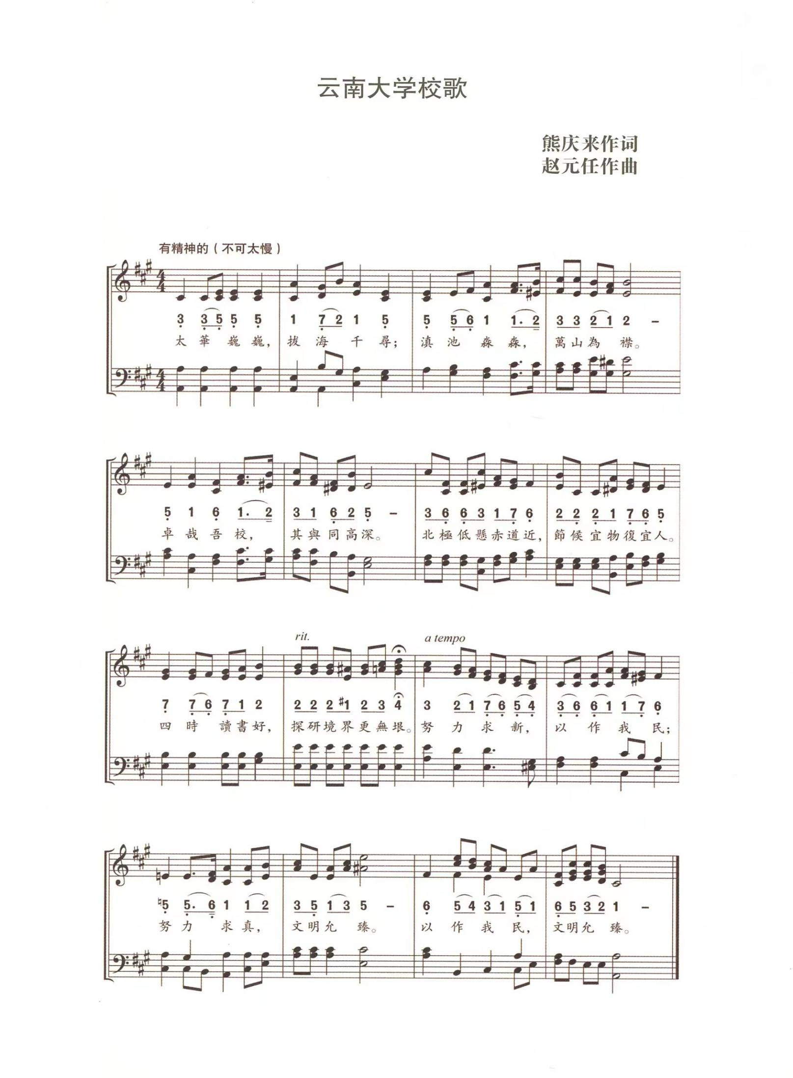 第十七条 学校校歌:《云南大学校歌》,熊庆来作词,赵元任作曲。